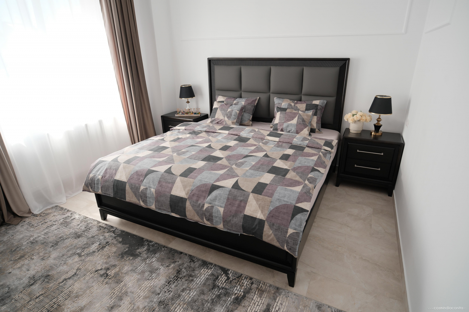 3. Set pentru pat matrimonial, cu saltea de 160x200 cm sau 180x200 cm format din 6 piese :