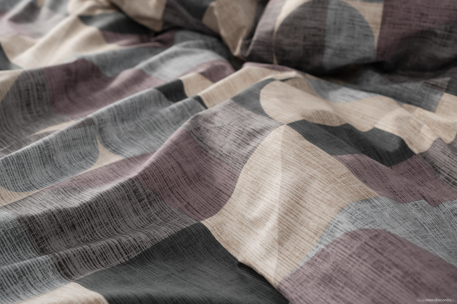 Quiet Geometry este un model perfect pentru un dormitor invaluit de liniste si calm. Lenjeria model Quiet Geometry, parte a noii colectii Lunoa, este alegerea perfecta daca preferi sa ai pe patul tau un imprimeu in nuante calde, cu forme lejere si relaxante