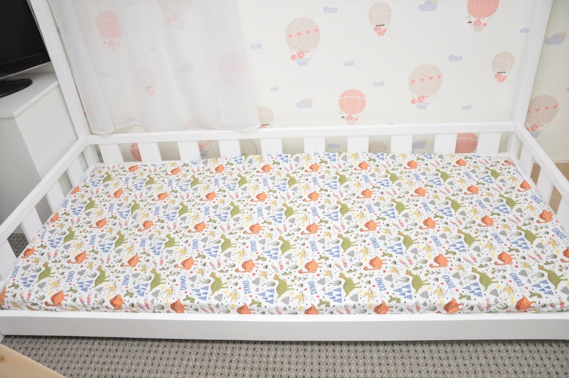 Cearsaf bumbac 100% model dinozauri mari saltea 120x200 cm
