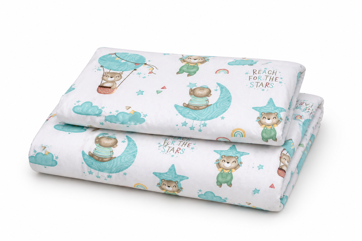 Material: 100% bumbac, cu imprimeu cu ursuleți în balon, certificat Oeko Tex 100