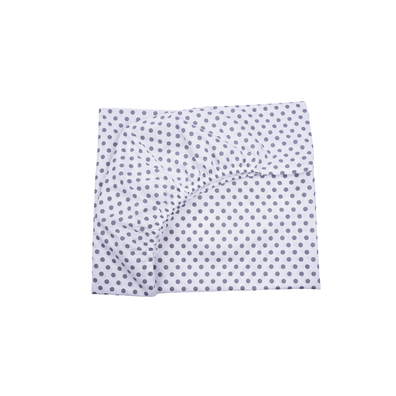 Lenjerie 2 piese pătuț incastrabil (140x60 cm) pentru grădiniță sau creșă, bumbac 100%, model Bulinuțe gri