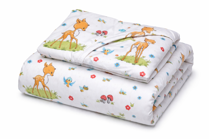 Acest set de lenjerie format din 2 piese, destinat paturilor încastrabile de 140x60 cm, are un model delicat cu căprioare, care inspiră naturalețe și căldură. Ilustrațiile blânde și armonioase creează o atmosferă plăcută, transformând momentul de odihnă într-o experiență reconfortantă.