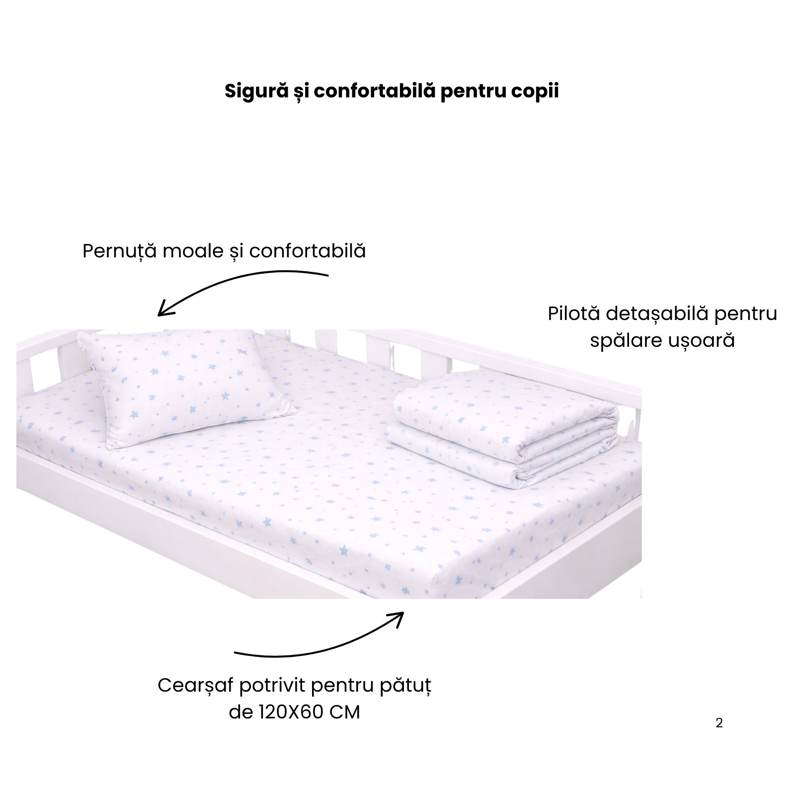 Designul delicat și culorile plăcute ajută la crearea unui spațiu relaxant, perfect pentru odihna copilului, fie acasă, fie la creșă. Materialele sunt atent alese pentru a oferi confort, siguranță și un somn liniștit copiilor.