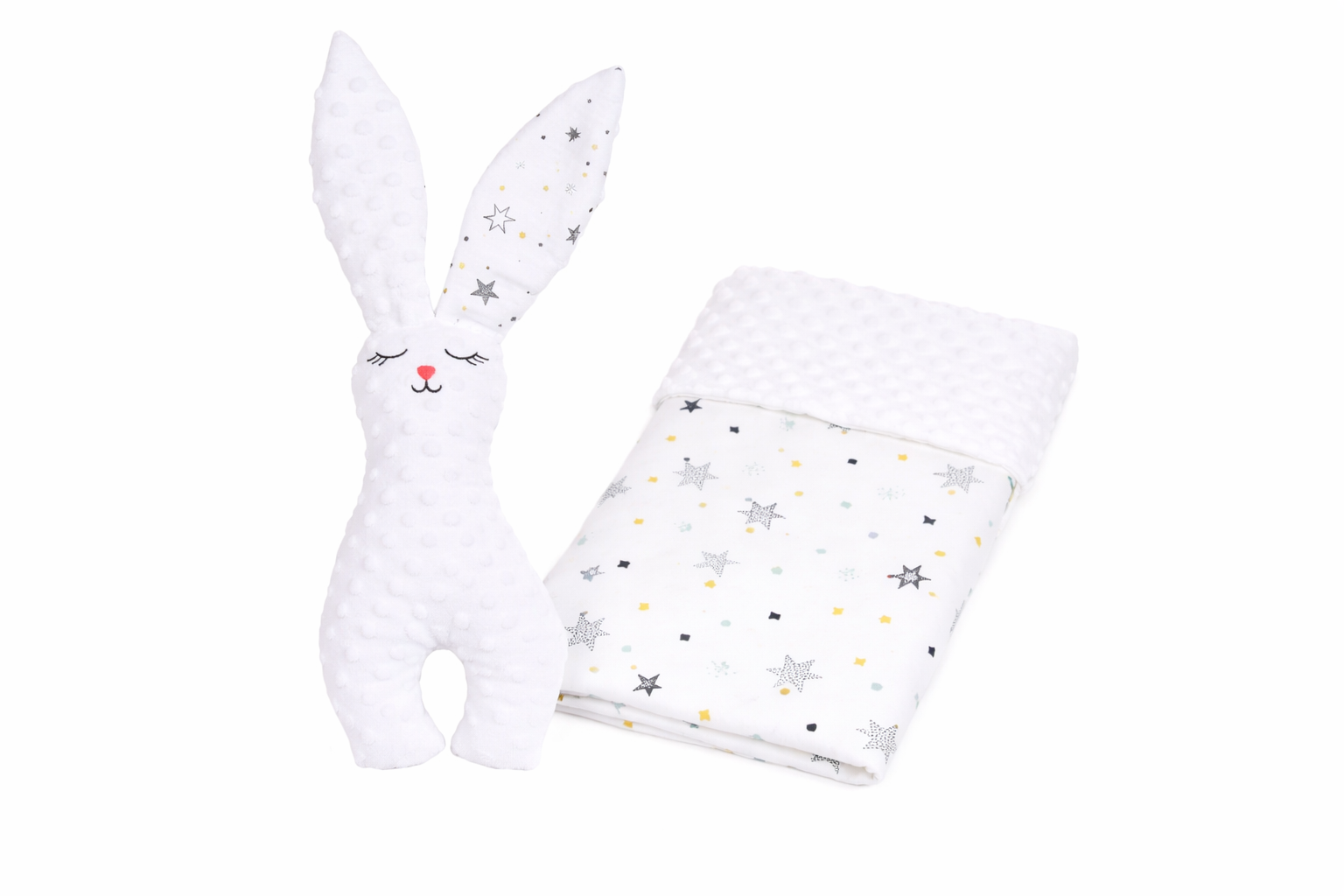 Pachet cadou Iepuras Paste si paturica model stelute colorate si plus alb