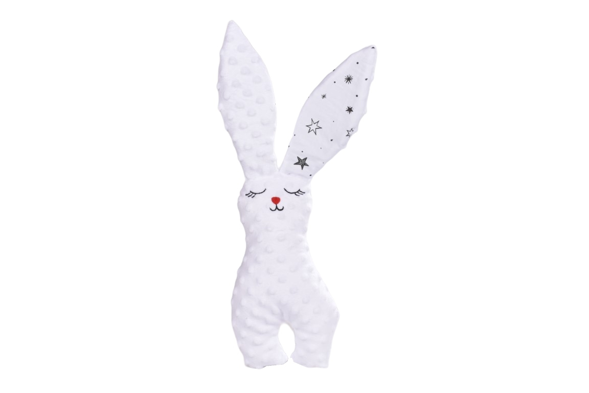 Jucăria în formă de iepuraș cu urechi lungi este realizată din pluș minky premium, cu o densitate de 380 g/m², care îi permite să își păstreze forma și moliciunea timp îndelungat.