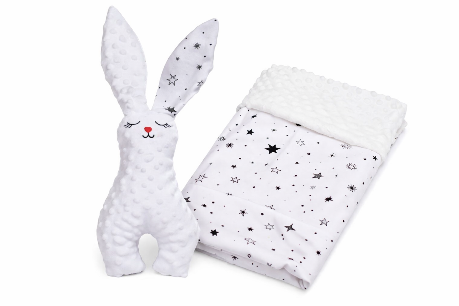 Pachet cadou Iepuras Paste si paturica model stelute si plus alb