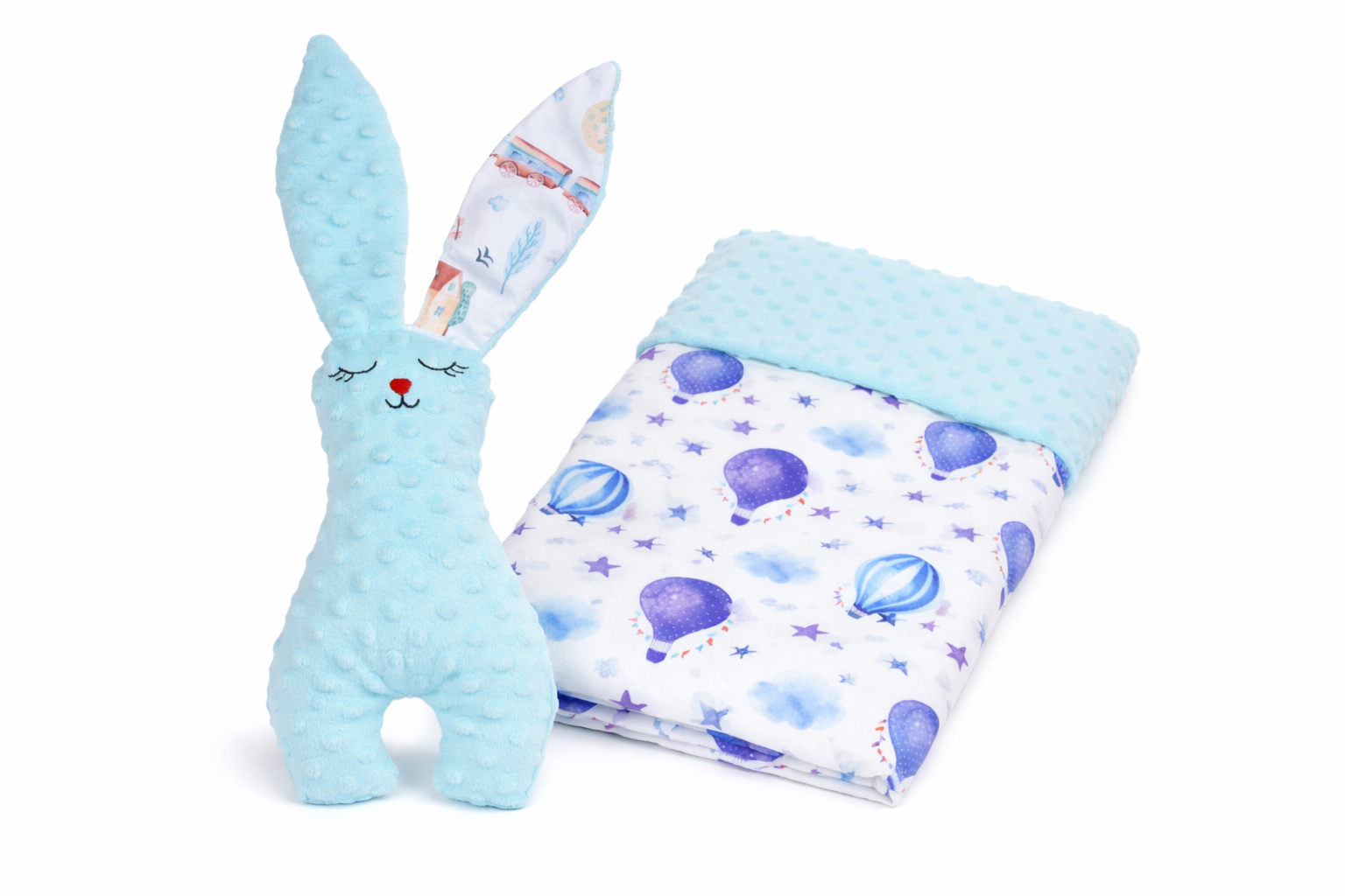 Pachet cadou Iepuras Paste si paturica model baloane plus bleu