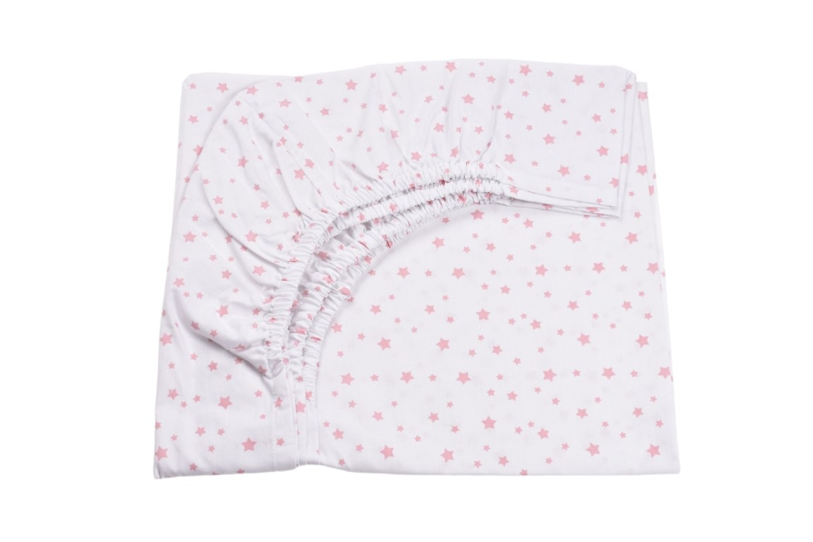 Lenjerie 3 piese bumbac 100% model stelute mici roz patut 120x60 cm